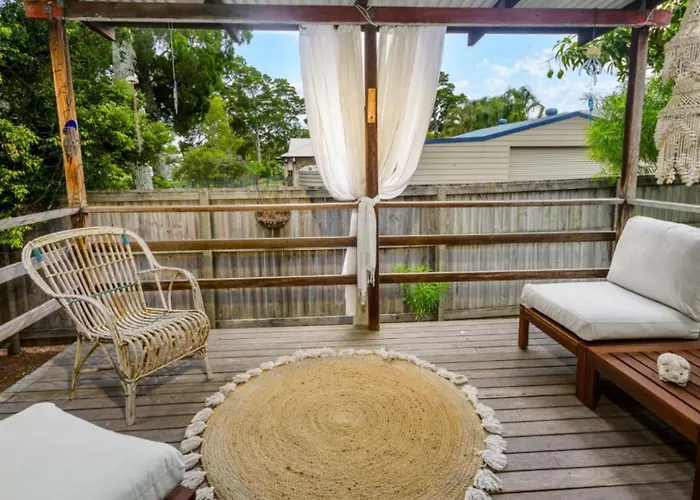 La 'Nelly'S Hidden Cottage' Bongaree, situada a 2 km de la Playa Roja Red Beach, ofrece un patio con vistas al jardín.